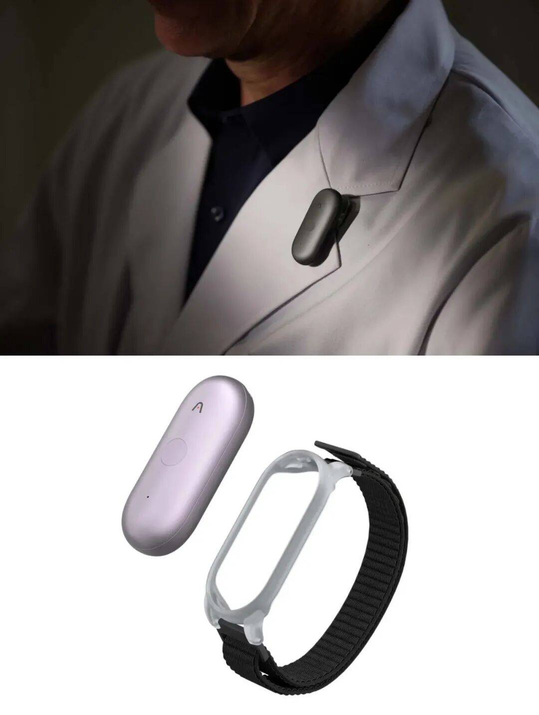 Plaud NotePin S 的外观与去年发布的初代 NotePin 基本一致,依旧采用类似智能手环的小型可穿戴设计,并随包装附带挂绳、腕带、夹子与磁吸别针等配件。