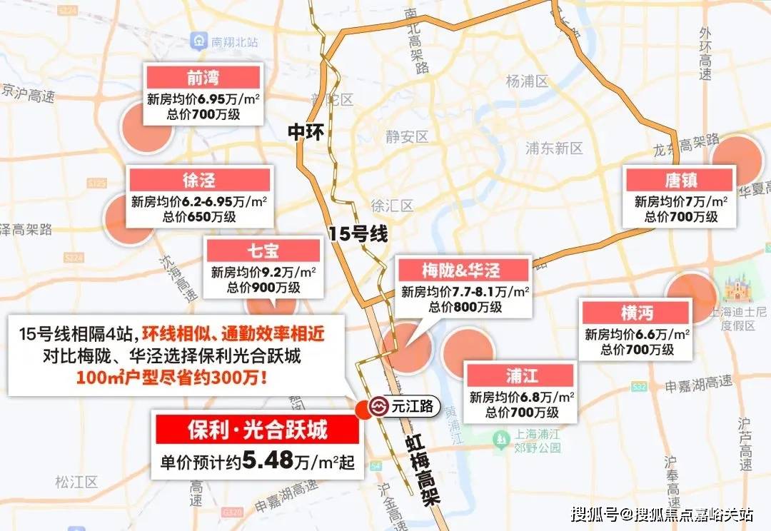 自驾的话,项目紧贴虹梅路高架,3个红绿灯即上中环!凭借虹梅路高架的优势,项目其实和华泾、梅陇、七宝处于同一价值环线。如今梅陇、华泾的新房单价都在8万左右,而保利·光合跃城,距离梅陇华泾仅4站地铁,自驾通勤效率与前者相差无几,100㎡户型几乎能节省近300万,性价比不言而喻!