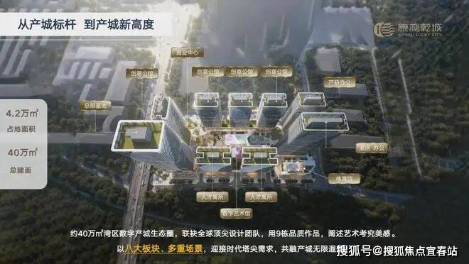 康利乾城。一个集“总部基地、精妆乾寓、企业会馆、数字艺术馆、体育馆、星级酒店、商业中心、运营中心”八大板块于一体的产城综合体,以“无界芯城”核心理念,定义产城发展全新范本。
