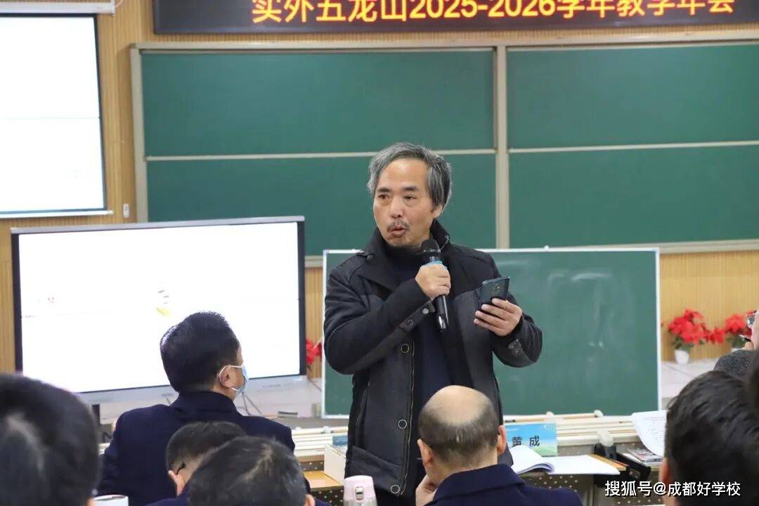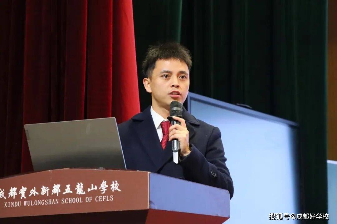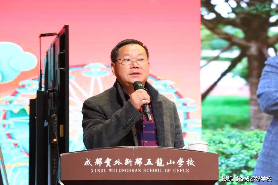 李俊校长表示实外五龙山始终牢记教育的初心和使命,秉持“立德树人,办人民满意的教育”的办学宗旨,坚定“培养学生终身发展力,把懵懂少年培养成智慧青年”的培养目标,全体教职员工教育教学致力于唤醒学生生命内力,培养其核心素养,为孩子们的幸福人生奠基。老师们奉行“严格要求,真情关爱”的育人之道,孜孜以求,勤勉工作,勇担责任,学校充满了盎然生机。一年来,学校以学习新课标为契机,老师们转变教育教学观念,更新课堂教学方法,立足素养导向,强化目标引领,大胆实践,狠抓落实,实外五龙山的课堂呈现别样的风采,老师们踊跃投身于各级各类培训,积极主动学习,在市区级赛课和技能大赛中频频获奖,摘金夺银。2025年,学校中考、高考成绩亮眼,迈上新台阶,赢得了社会各界的高度赞誉。学校积极响应新都区委区政府提出的“教育强区”战略,努力办好新都百姓家门口的优质学校,通过全校教职员工的不懈追求和踔厉奋进,实外五龙山人兑现了自己的承诺,并向着“更快、更高、更强”的目标执着前行。最后,李俊校长希望与会嘉宾一如既往的关心、支持实外五龙山的教育教学工作,并对学校的工作提出宝贵意见。