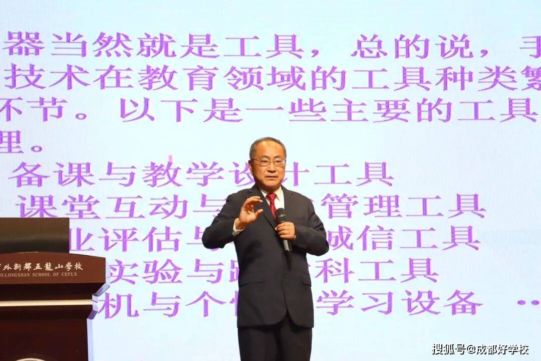 “器”是具体工具。他列举了备课软件、课堂互动平台、作业评估系统、虚拟实验设备、个性化学习终端等多样化AI教育工具,强调工具虽多,关键在于“以人为本”的合理运用。