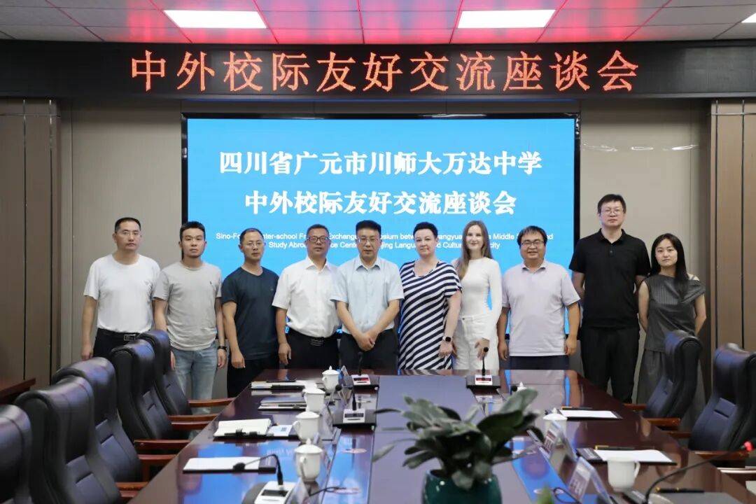 “海内存知己,天涯若比邻。”在这万物并秀的仲夏时节,广元市川师大万达中学喜迎远方贵宾,校园内洋溢着开放包容、共谋发展的热烈氛围。6月17日上午,北京语言大学留学服务中心携手白俄罗斯国工大国际学院院长一行,莅临我校访问交流,一场旨在深化国际合作、共育时代英才的高规格座谈会在我校二楼会议室隆重举行。