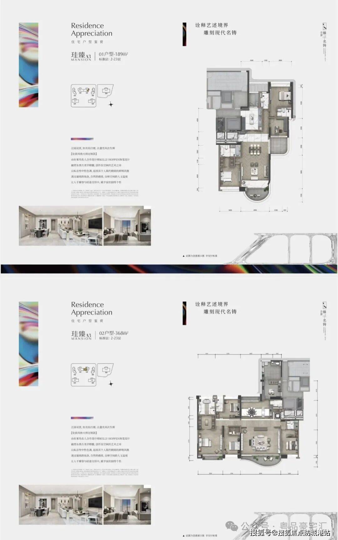 住宅部分主要由A1-A4栋组成,提供188、280、368平方米的三房至四房户型。这些户型最大的特点在于“全套房设计”和“超大面宽”。